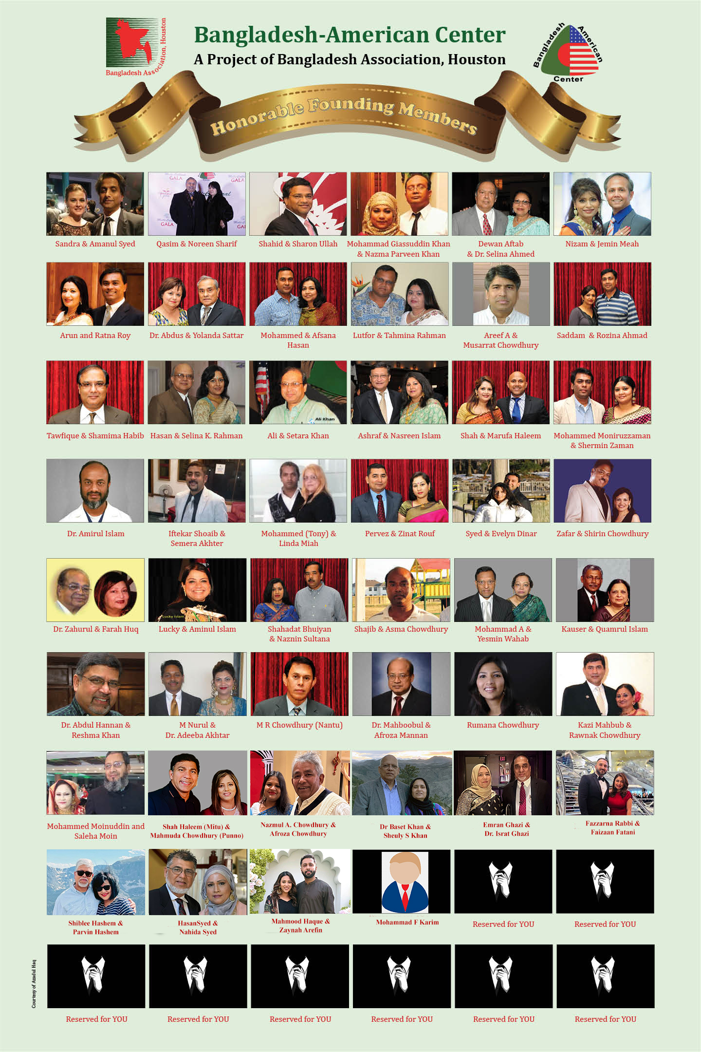 Following donors were generous to pay at least $10,000 to become Founding Members of Bangladesh American Center. (Updated – March 21, 2026)